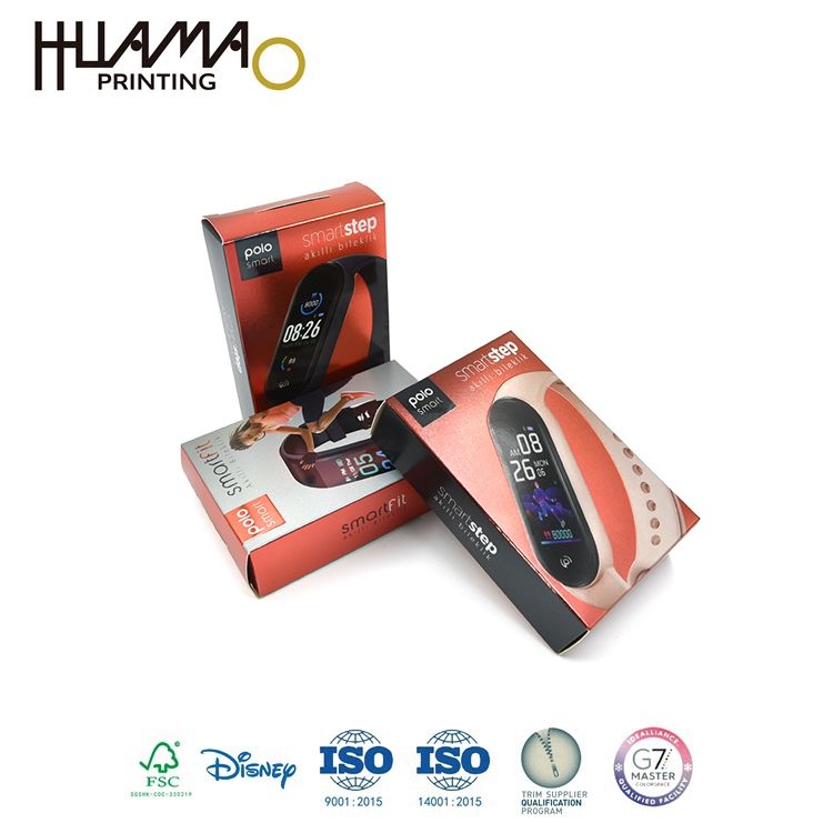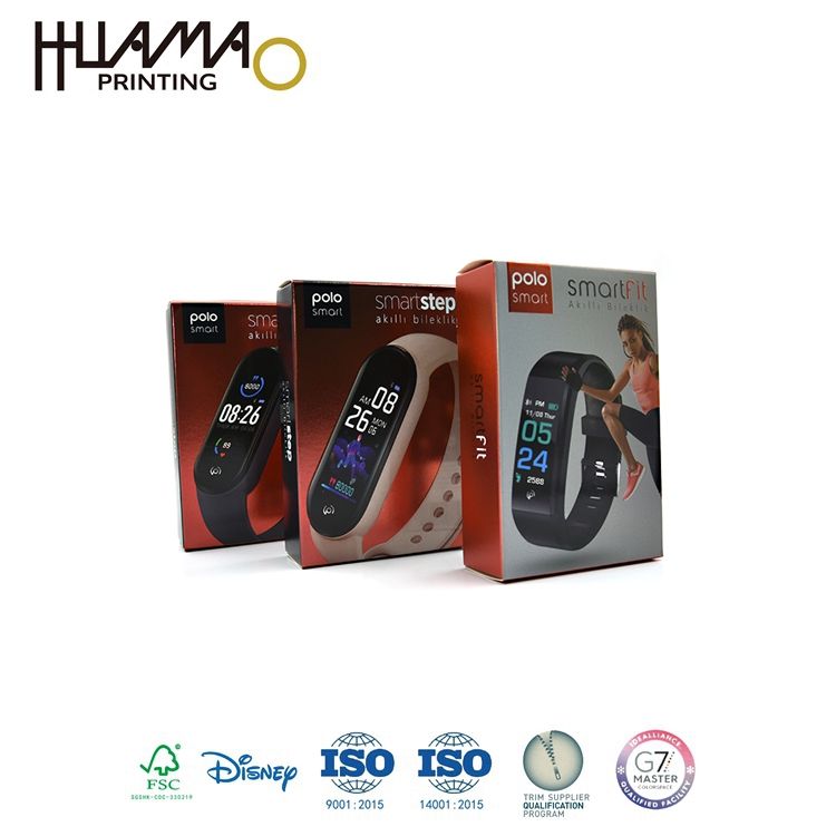กล่องกระดาษนาฬิกาอัจฉริยะแบบกำหนดเองจากโรงงาน กล่องกระดาษสี กล่องบรรจุภัณฑ์กระดาษสำหรับผลิตภัณฑ์ดิจิทัล 3C แบบกำหนดเอง พิมพ์ 4 สี พร้อมเคลือบ Spot UV