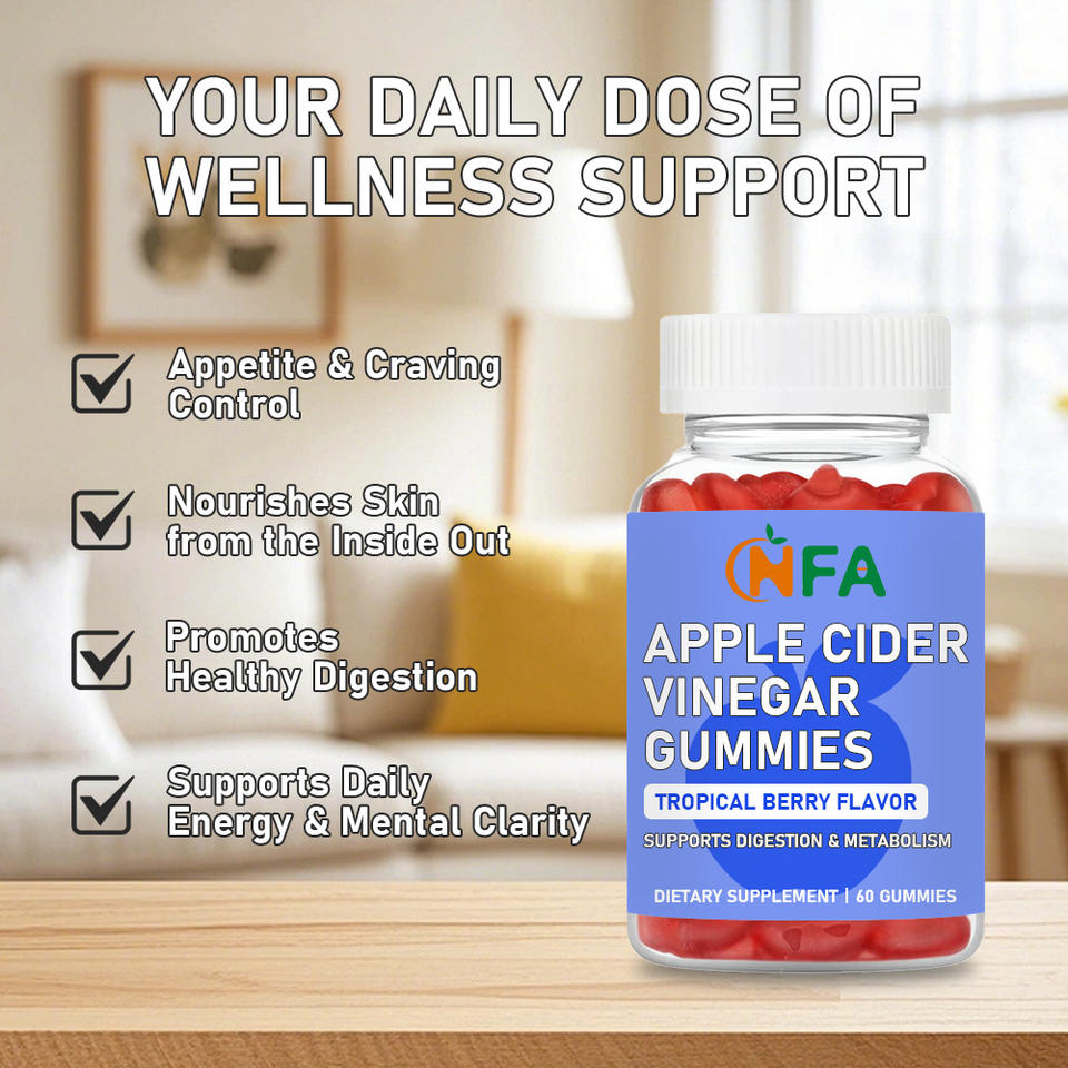 เยลลี่น้ำส้มสายชูแอปเปิ้ลแบบกำหนดเองจากโรงงาน พร้อมโฟเลต อาหารเสริมที่ช่วยเพิ่มพลังงานประจำวันและเสริมสร้างความชัดเจนทางจิตใจ
