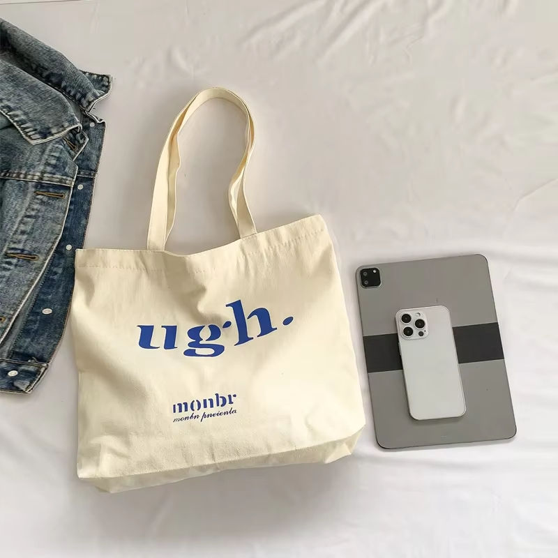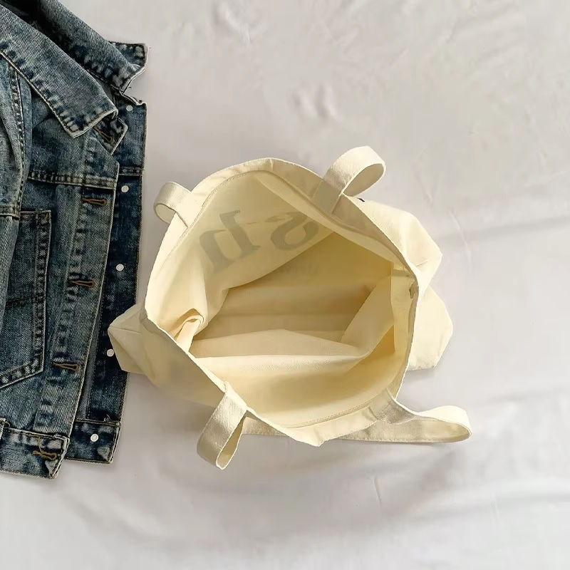 กระเป๋าผ้าใบสะพายไหล่เดียวมีซิปตัวอักษรทำจากผ้าฝ้ายขนาดใหญ่สำหรับซื้อของชำ