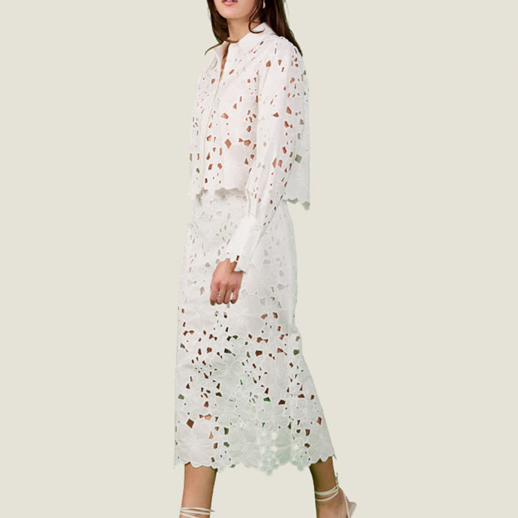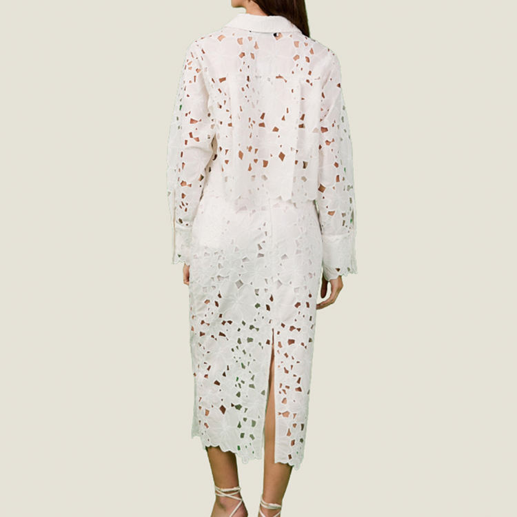 เสื้อเชิ้ตดีไซน์คลาสสิกแบบโปร่งจากโรงงาน, ชุดเดรสลูกไม้ยาวปานกลาง, ชุดเดรสปักลายผ้าฝ้ายออร์แกนิกสั่งทำพิเศษ