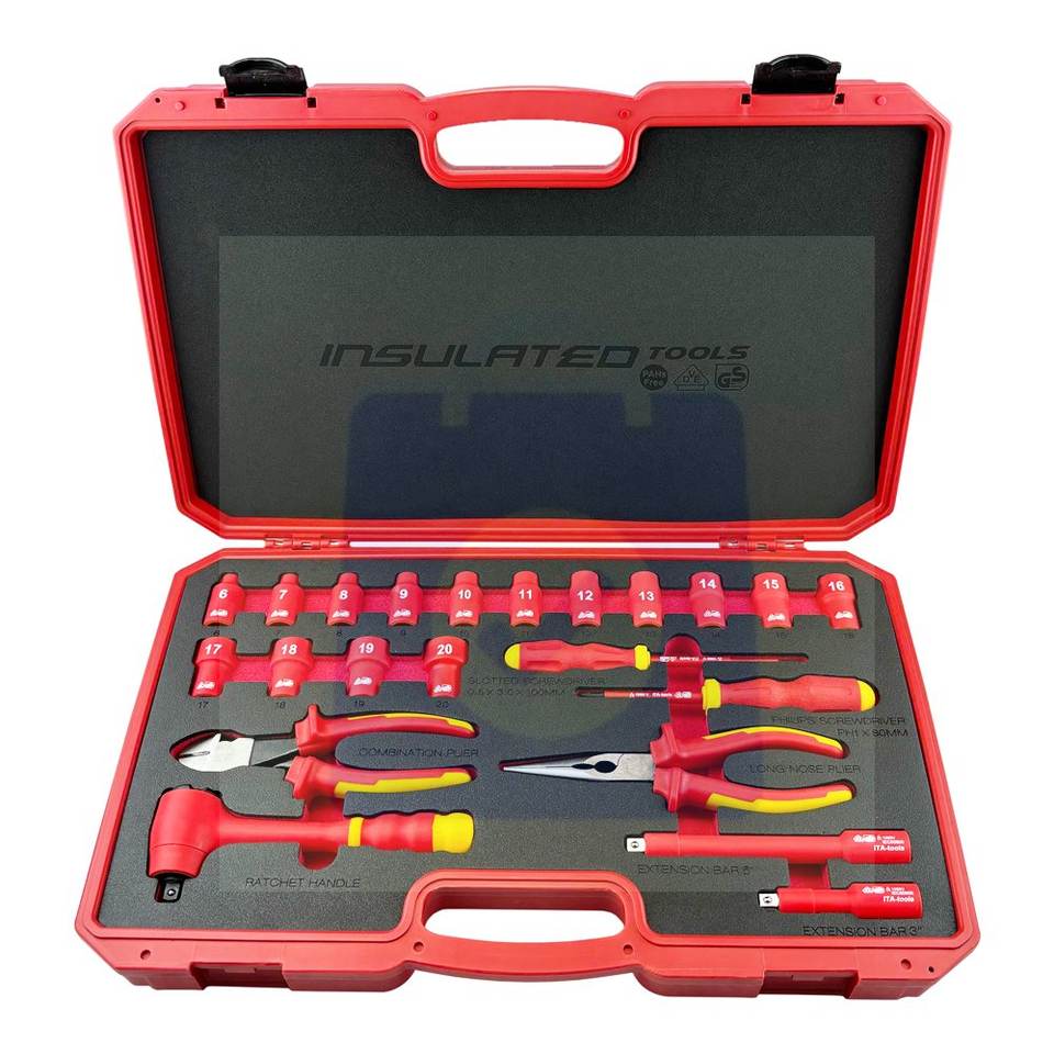 ชุดเครื่องมือช่างไฟฟ้าแบบไร้สาย 22 ชิ้น ขนาด 3/8 นิ้ว มาตรฐานเมตริก ผลิตจากเหล็กโครเมียมวานาเดียม ฉนวนกันไฟฟ้า VDE-GS 1000V จัดจำหน่ายโดยตรงจากโรงงาน