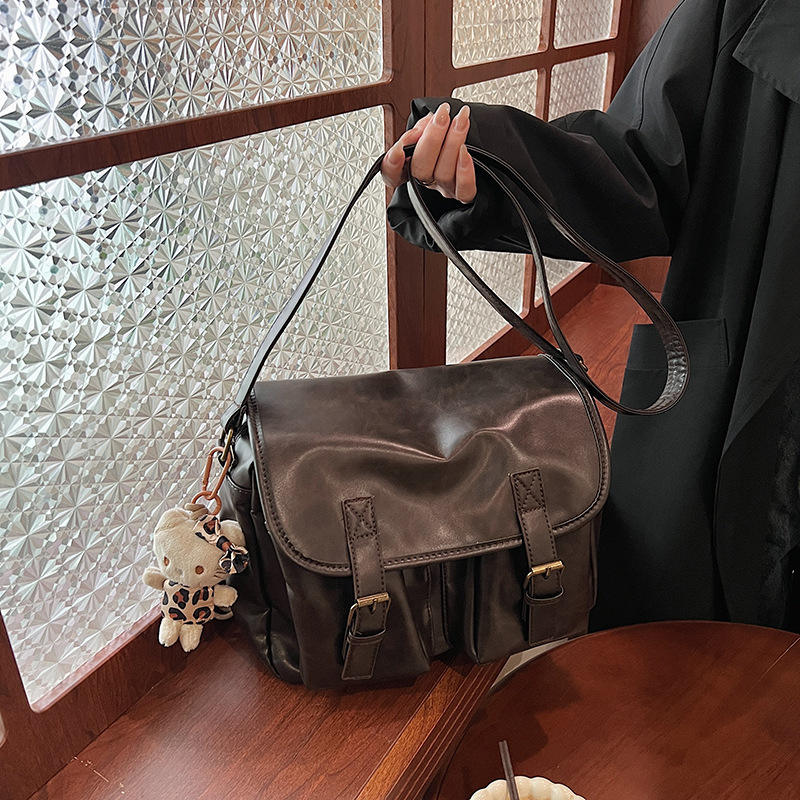 กระเป๋าสะพายไหล่แฟชั่นสำหรับผู้หญิงกระเป๋าแมสเซนเจอร์แนวเรโทรสีน้ำตาลสินค้าตรงจากโรงงาน