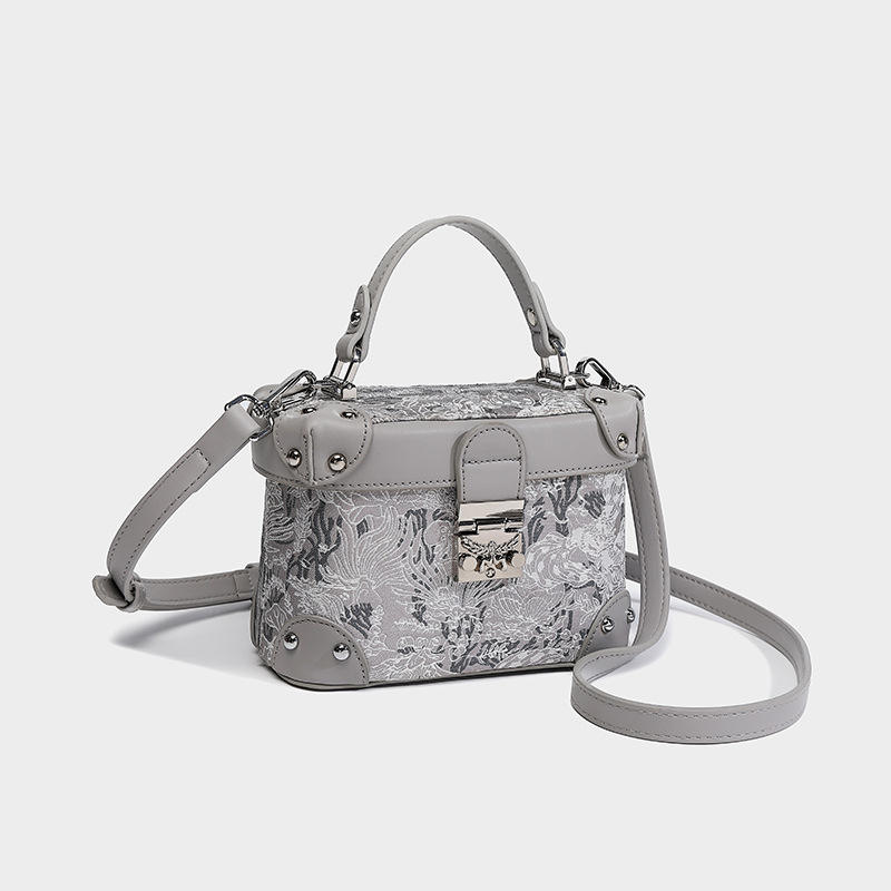 กระเป๋าใส่กล่องพิมพ์ลายสีชมพูพร้อมล็อคโลหะสไตล์สวยงามและน่ารัก