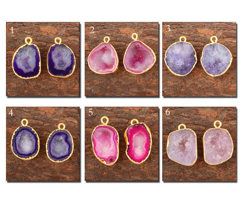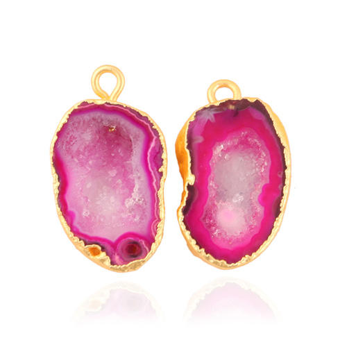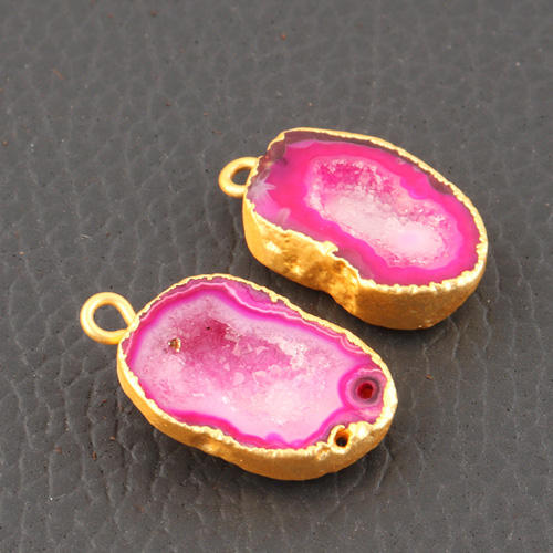 Factory Direct Selling pink Geode Druzy Matte Finish Dull Gold Electroplating Single Bail Pendant Connector Making Jewelry DIY