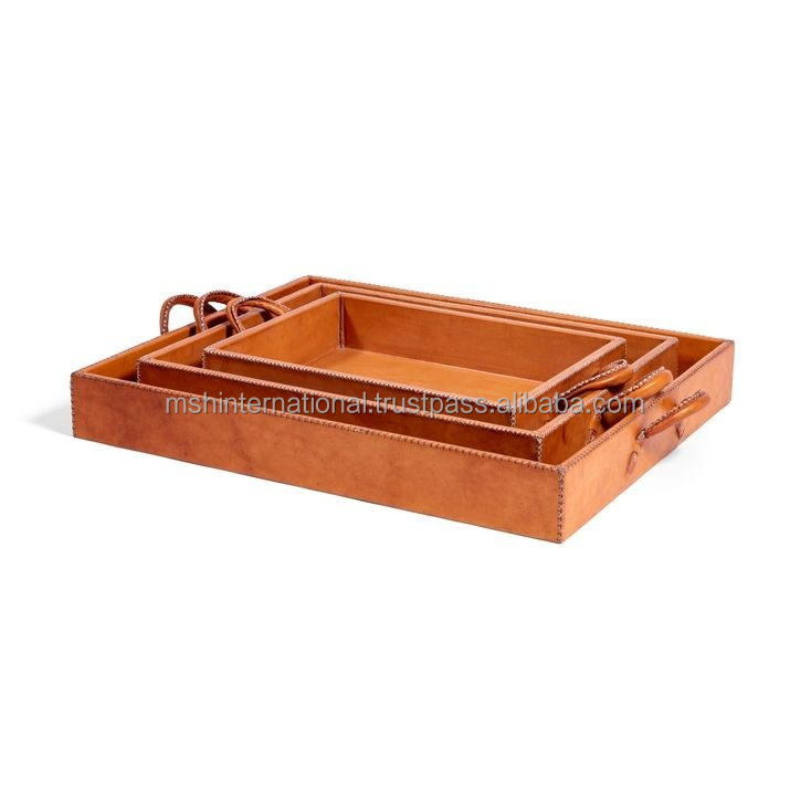 ถาดจัดระเบียบหนังสไตล์ยุโรปหรูหราพร้อมที่จับถาดเก็บหนัง