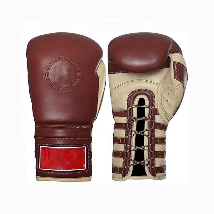 ถุงมือชกมวยหนังแท้แบบผูกเชือกถุงมือฝึกชกมวยแบบมืออาชีพปรับแต่งได้