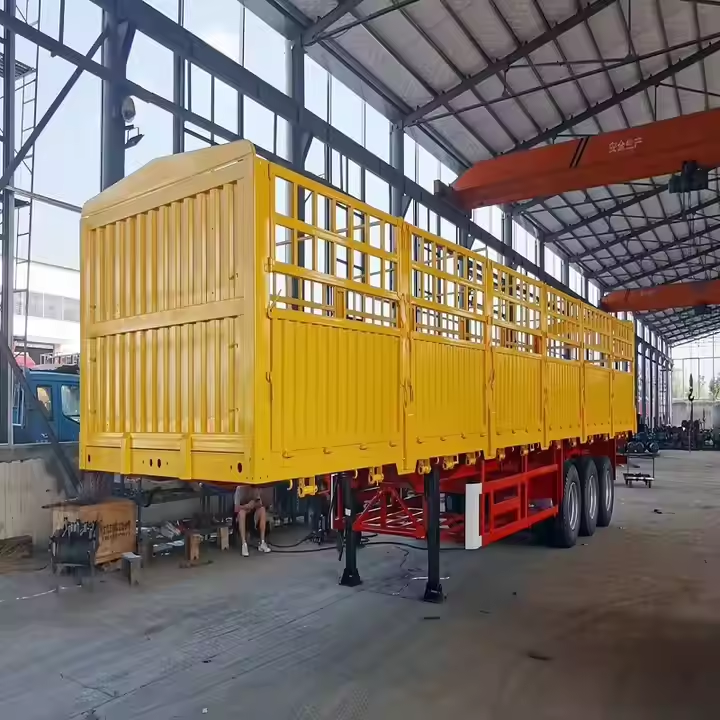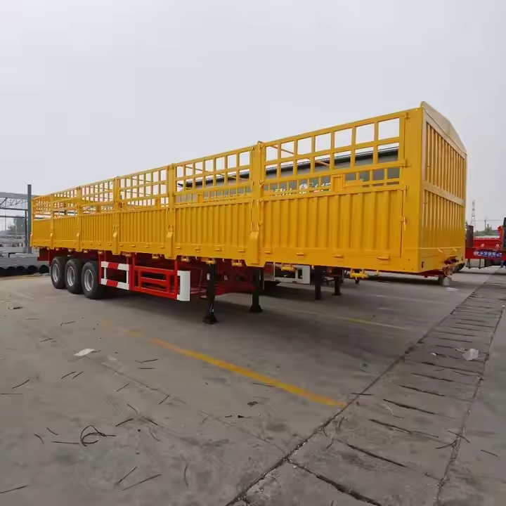 ราคาโรงงาน รถพ่วงบรรทุกสัตว์ 3 เพลา 40 ฟุต แบบมีรั้วข้าง รถพ่วงบรรทุกสินค้าขนาดใหญ่ รถพ่วงกึ่งพ่วงแบบมีรั้วข้าง