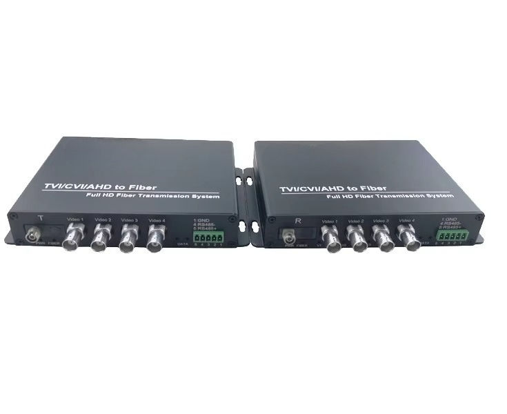 ราคาโรงงาน ตัวแปลงไฟเบอร์ออปติก 4 ช่อง 1080P HD วิดีโอ TVI/CVI/AHD พร้อมข้อมูล RS485