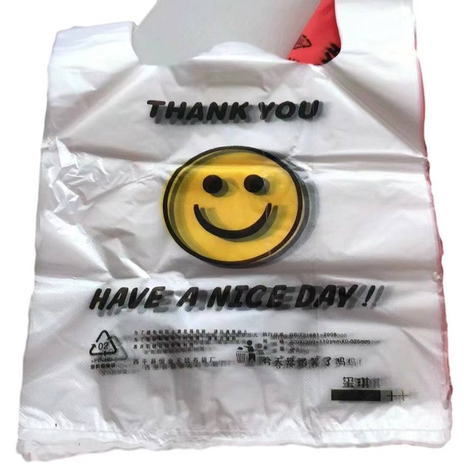 ถุงใส่เสื้อยืดพลาสติกสำหรับช้อปปิ้งซูเปอร์มาร์เก็ตเกรดอาหารพิมพ์ลายได้ตามต้องการ