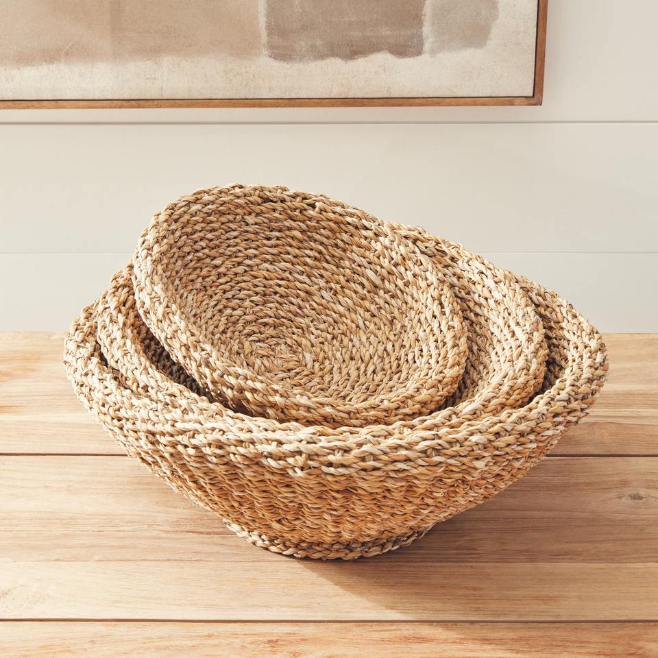 ตะกร้าจัดเก็บของในครัว ราคาโรงงาน ตกแต่งบ้าน ทำจากหญ้าทะเลธรรมชาติ ขายส่ง