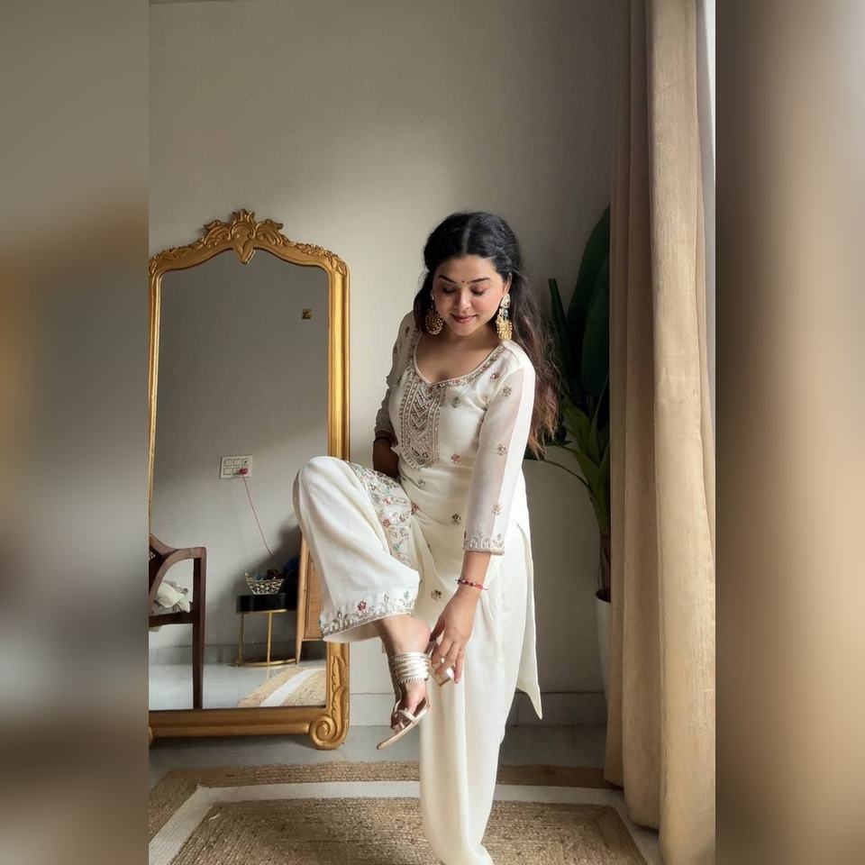 Factory price ladies suit Chinon based needle craft 3 piece set for textile source and shop elegant look