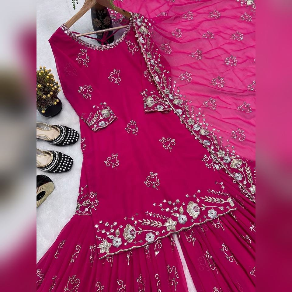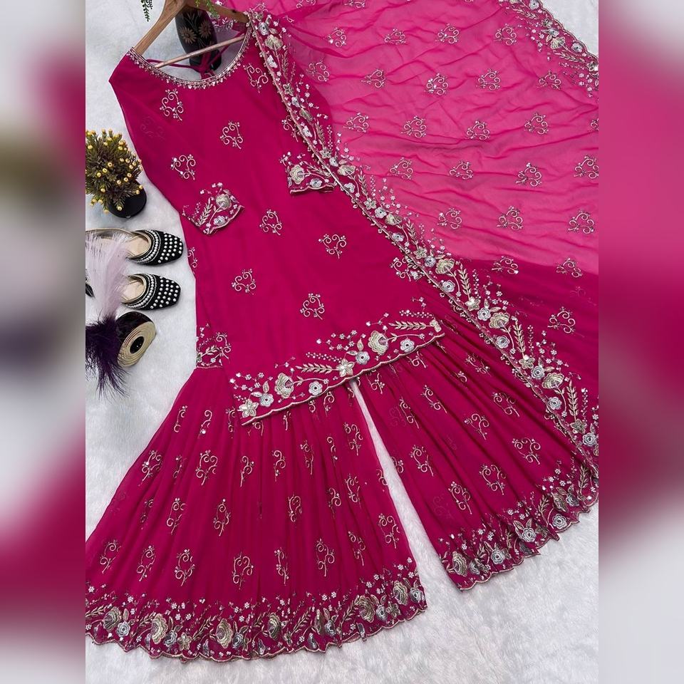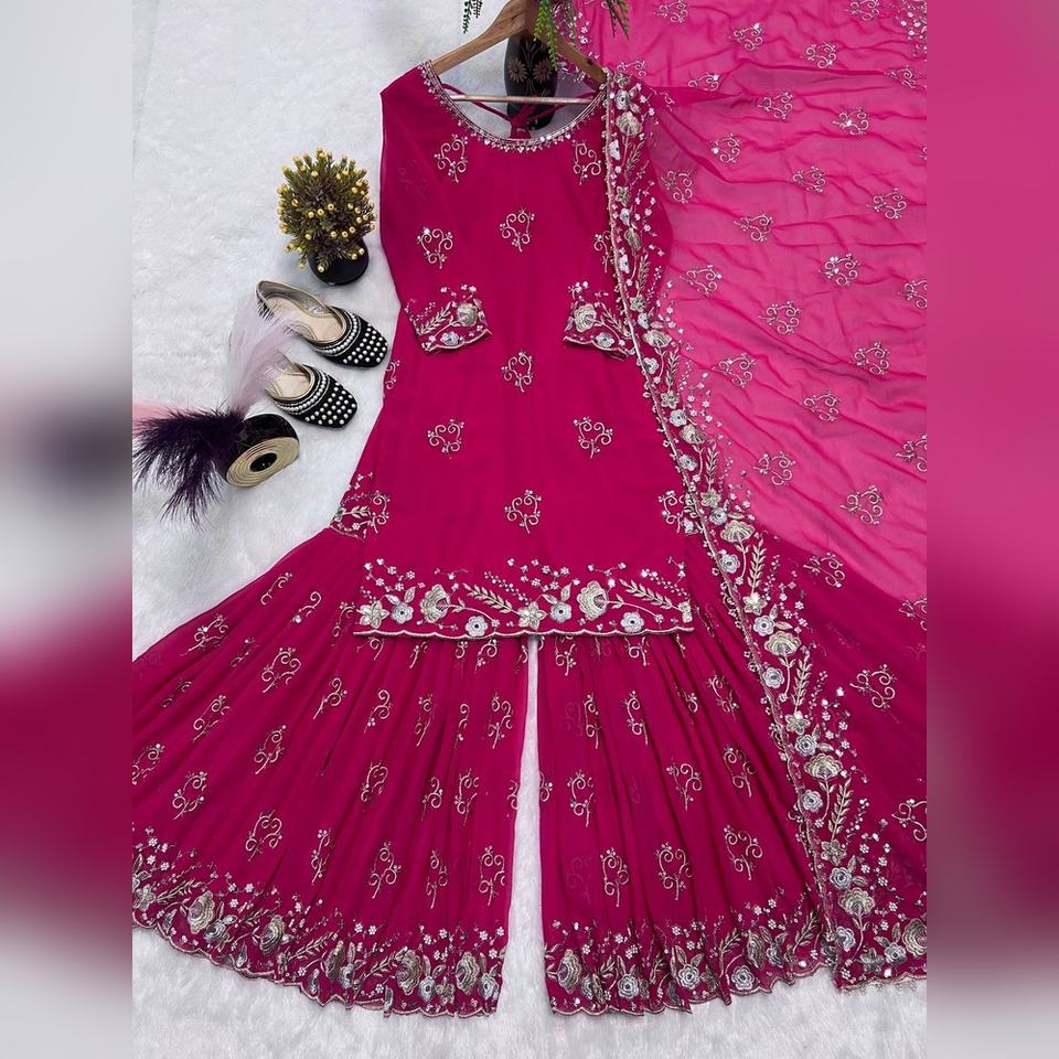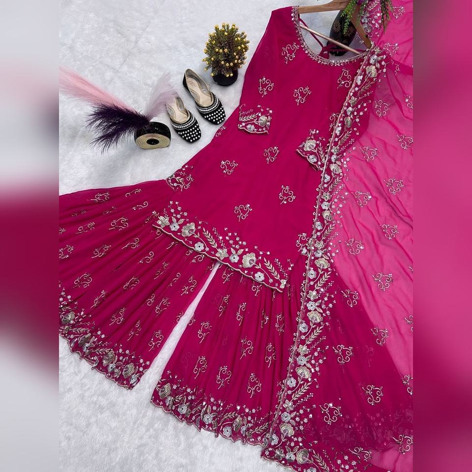 ชุดสูทผู้หญิงราคาโรงงาน ไซส์ M-XXL ผ้าจอร์เจตต์ งานปักมือ 3 ชิ้น สำหรับจัดจำหน่ายในแคตตาล็อกและคอลเลคชั่นแฟนซีในร้าน