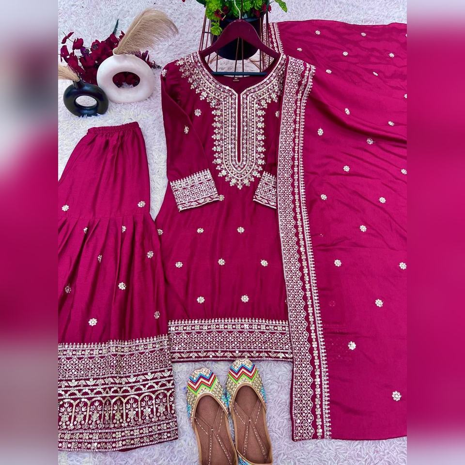 ชุดส่าหรีสไตล์ชารารา ไซส์ M-XXL ผ้าฝ้าย งานปักมือ 3 ชิ้น ราคาโรงงาน สำหรับจัดจำหน่ายในแคตตาล็อกและร้านค้า ทรงทันสมัย