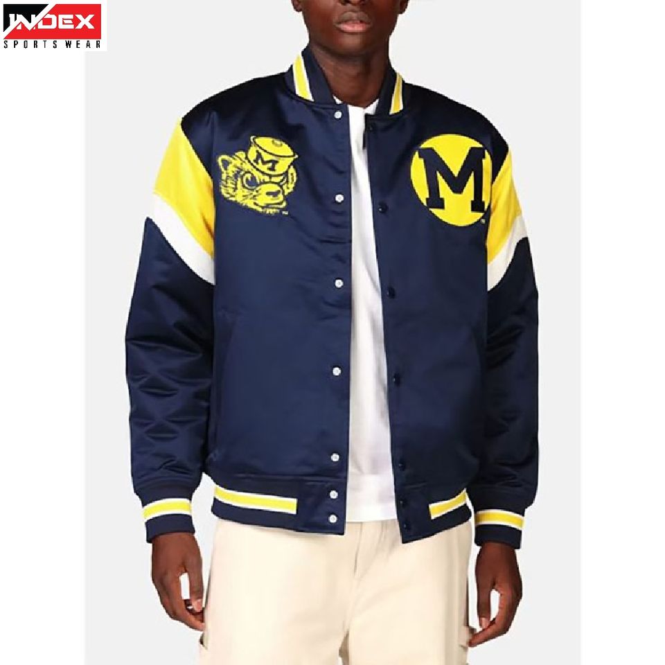 เสื้อแจ็คเก็ตวาร์ซิตี้ผ้าซาตินแบบสั่งทำจากโรงงานในสหรัฐอเมริกา พร้อมปักโลโก้ เสื้อแจ็คเก็ตบอมเบอร์ผู้ชาย ชุดกีฬาคุณภาพพรีเมียม ผู้ผลิตเสื้อผ้ากีฬา รับผลิตจำนวนมาก
