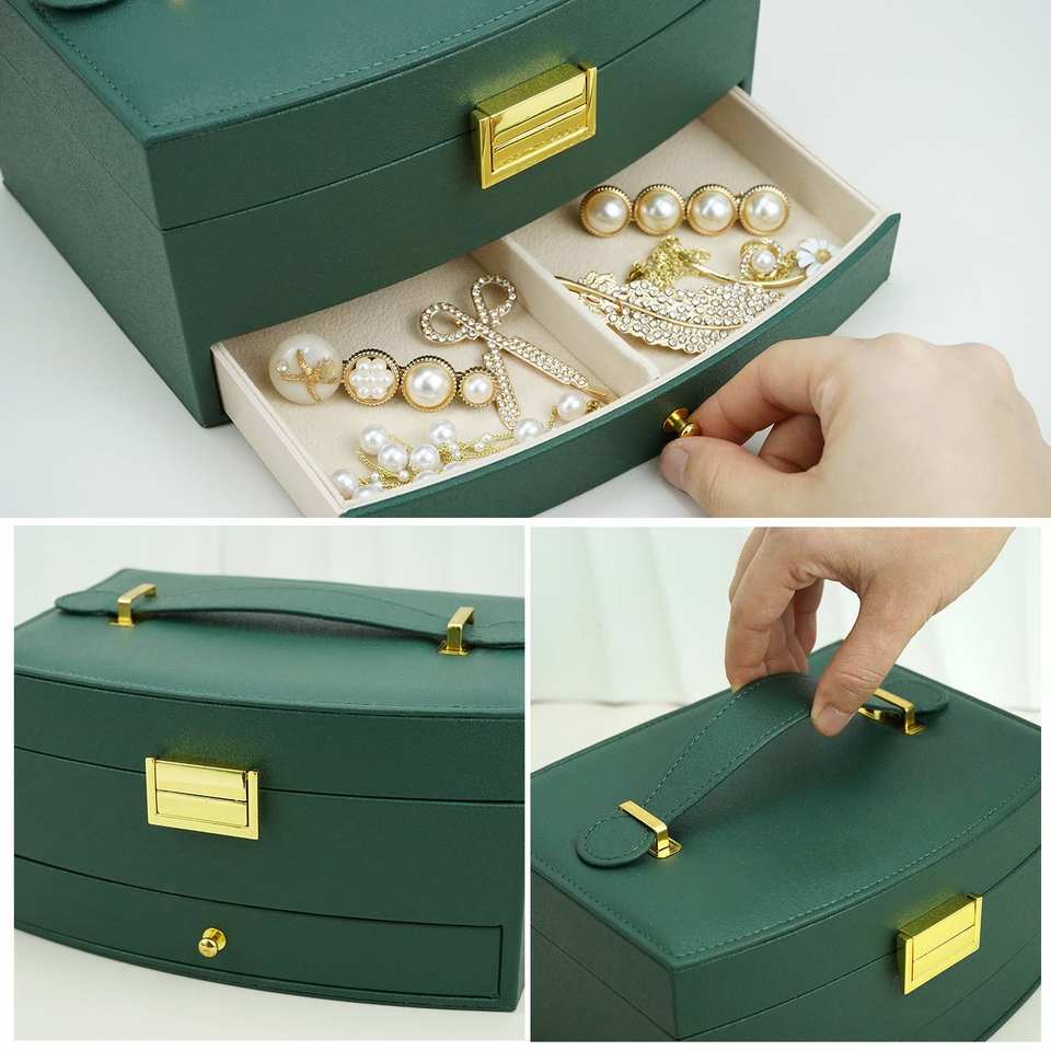 Factory Sale Travel Jewelry Organisation Box in Stock PU Leather Jewelry Organizer with Mirror Jewelry Tray Storage Organizer