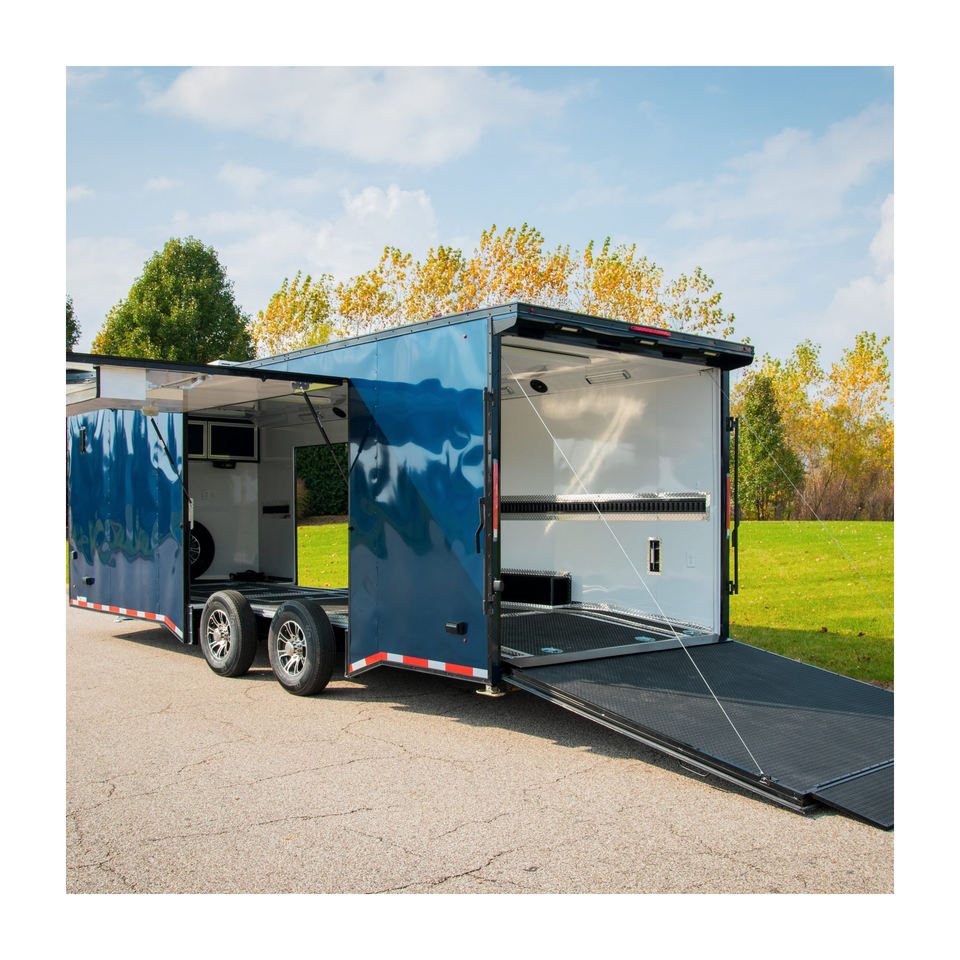 รถเทรลเลอร์ท้ายรถเทรลเลอร์สำหรับขนส่งทางรถยนต์เบรกไฟฟ้าทนทานและทางลาดสำหรับโหลดแบบปรับได้
