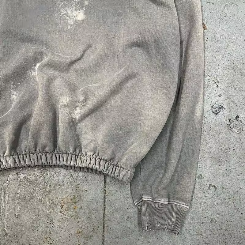 เสื้อฮู้ดสำหรับผู้ชายเสื้อครอปแบบถักลายปักลายแบบไม่มีเชือกซักได้สไตล์วินเทจผลิตจากโรงงาน