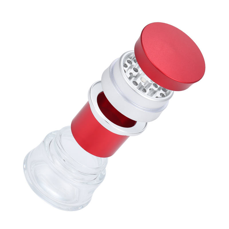 โรงงานขายส่งเครื่องบดแก้วใส Rukioo JAQ0035 ยอดนิยมจากจีน รับทำโลโก้ 4 ชั้น อลูมิเนียมอัลลอยด์ ขนาด 60*65 มม. สำหรับบด