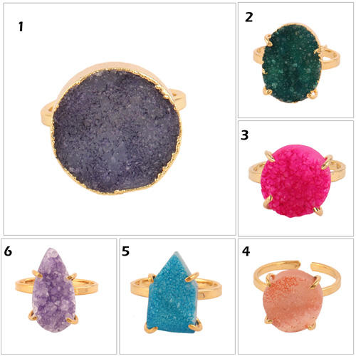 แหวน Druzy ชุบทอง/เงินสไตล์โบฮีเมียน,แหวนปรับได้สำหรับทุกเพศรูปร่างลูกแพร์ธรรมชาติสีฟ้า
