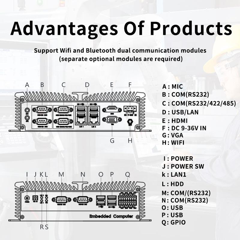 กล่องอะลูมิเนียมฝังคอมพิวเตอร์ตั้งโต๊ะ A20 J1900 Intel CPU พร้อมหน่วยความจำ32G ระบบระบายความร้อนไร้พัดลม Linux OS