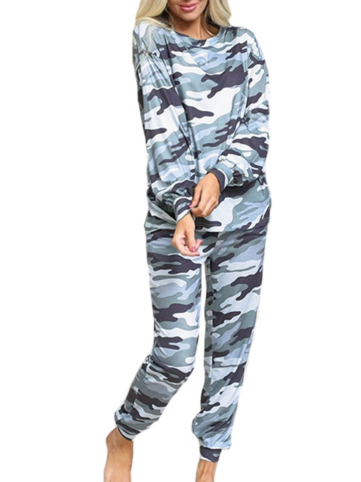 ชุดออกกำลังกายวิ่งออกกำลังกาย2ชิ้นพิมพ์ลายพรางสำหรับผู้หญิงชุดออกกำลังกายโยคะพิมพ์ลายพราง