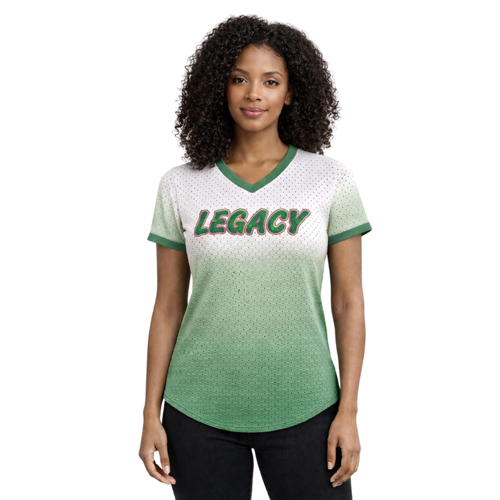 เสื้อเบสบอลแบบสวม Faded 08 Legacy สำหรับชมรมนักศึกษาหญิง สีชมพู-เขียว ผ้าตาข่ายระบายอากาศ