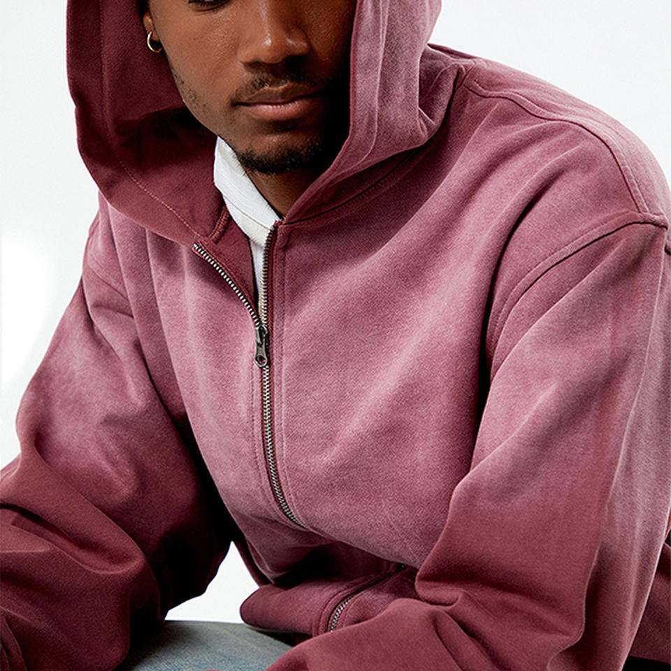 เสื้อฮู้ดสำหรับผู้ชายผ้าซักแบบกรดมีฮู้ดผ้าฝ้าย100% 400gsm บ็อกซี่ฟิตีซักได้ไซส์ใหญ่พิเศษ