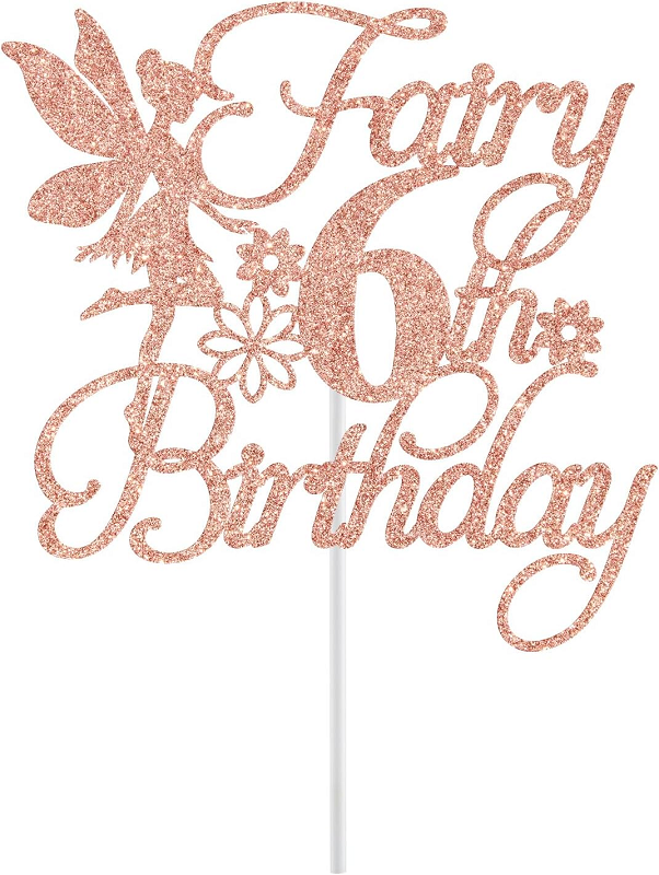 ของตกแต่งเค้กวันเกิด6th นางฟ้าตัวท็อปเปอร์เค้กวันเกิดสำหรับเด็กผู้หญิงที่ตกแต่งงานวันเกิดครบรอบปีที่6ตกแต่งเค้กกลิตเตอร์สีทองรูปนางฟ้า