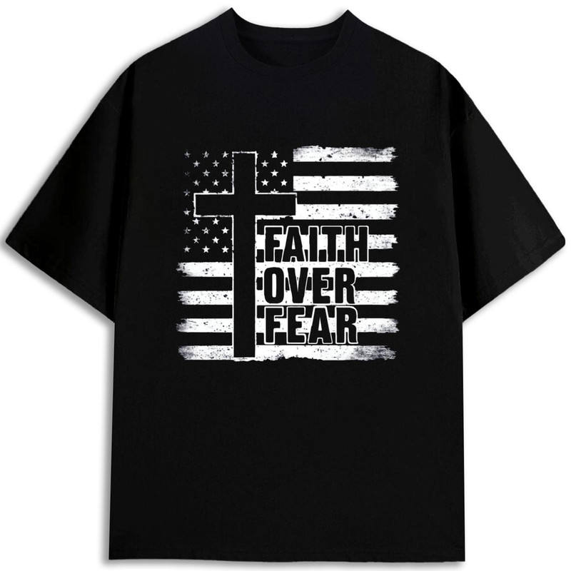 เสื้อยืดคอกลมแขนสั้นพิมพ์ลายธงชาติอเมริกัน Faith Fear Cross ผ้าฝ้าย 100% 180gsm ทรงปกติ ใส่สบาย เป็นมิตรกับสิ่งแวดล้อม