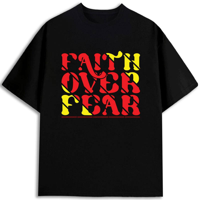 เสื้อยืดผู้ชาย Faith Over Fear ผ้าฝ้าย 100% ทรงปกติ พิมพ์ลายสกรีน แขนสั้น คอกลม ผ้าเจอร์ซีย์ ลายพิมพ์ 180 กรัม