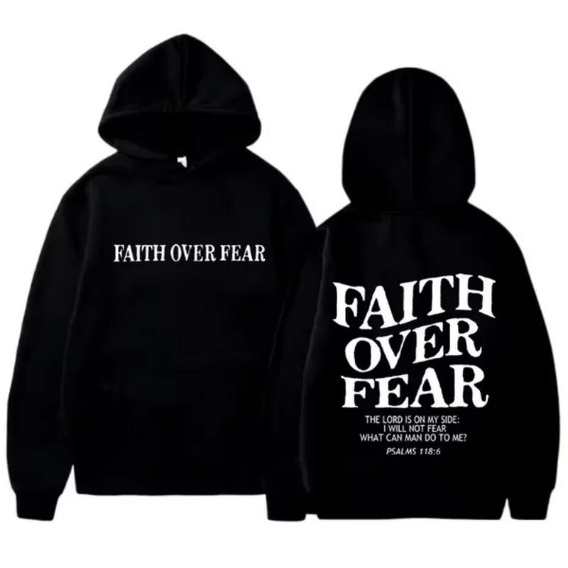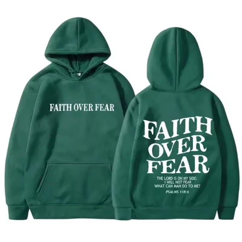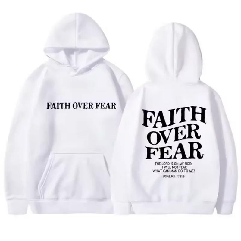 เสื้อฮู้ดแขนยาวมีฮู้ดสำหรับผู้ชายและผู้หญิง, เสื้อสเวตเชิ้ตผ้าคอตตอนบุ100% ลายพิมพ์ลาย Faith over Fear