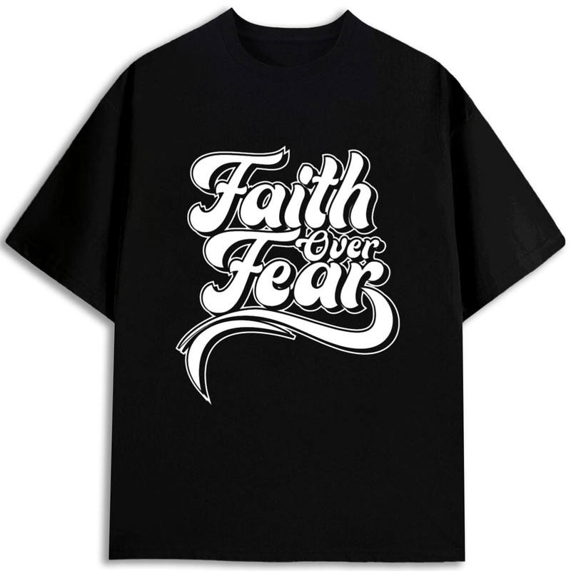 เสื้อยืด Faith Over Fear สำหรับผู้ชาย ผ้าฝ้ายเจอร์ซีย์ 100% 180 กรัม แขนสั้น พิมพ์ลายสกรีน คอกลม ทรงปกติ ดีไซน์รักษ์โลก