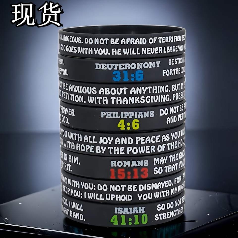 กำไลข้อมือซิลิโคน Faith ชุด 4 ชิ้น ทนทาน ตกแต่งสวยงาม พร้อมข้อความจากพระคัมภีร์ สำหรับผู้ศรัทธาในศาสนาคริสต์ ผลิตโดย Zhaoqing