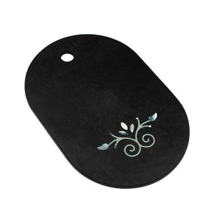 เขียงหินอ่อนสีเขียวตกแต่งจาก Faizcraft สำหรับใช้ในครัว พร้อมพื้นผิวหินทรงกลมและลายเส้นสีขาว