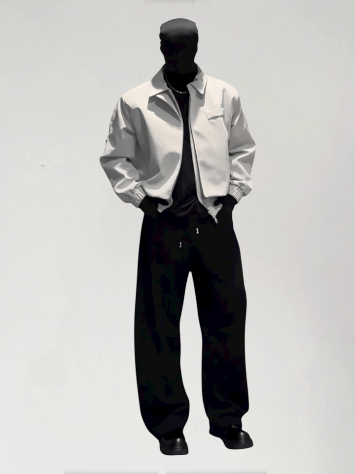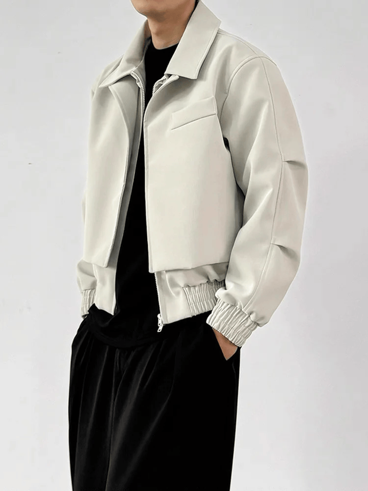 เสื้อแจ็กเก็ตบอมเบอร์แบบมีซิปด้านหน้าทำจากหนังเทียมดีไซน์แบบเย็บสองชิ้นสำหรับฤดูหนาว