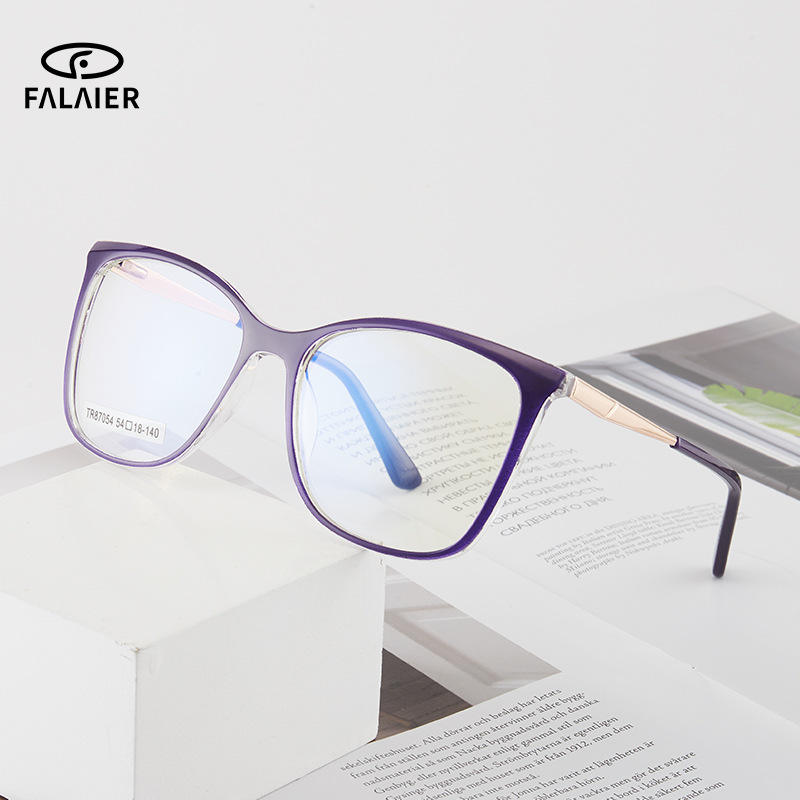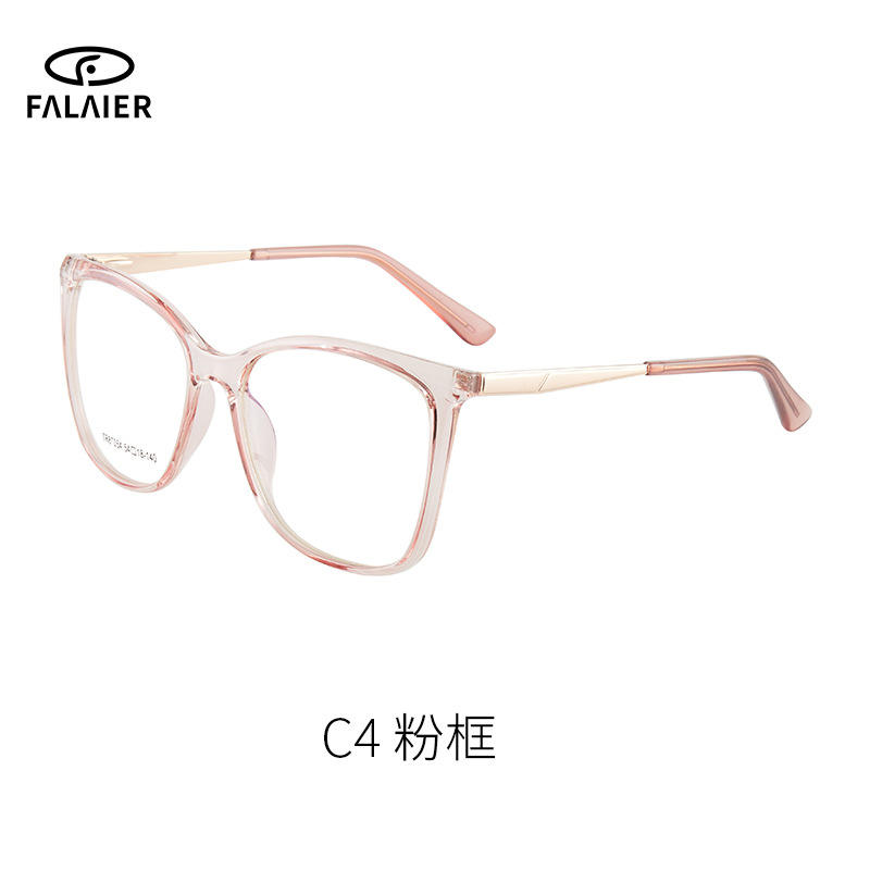 FalaiEr Cat Eye Eyeglasses Frames C4 Pink Anti Blue Light Women Full Frame TR Material Ac Lens