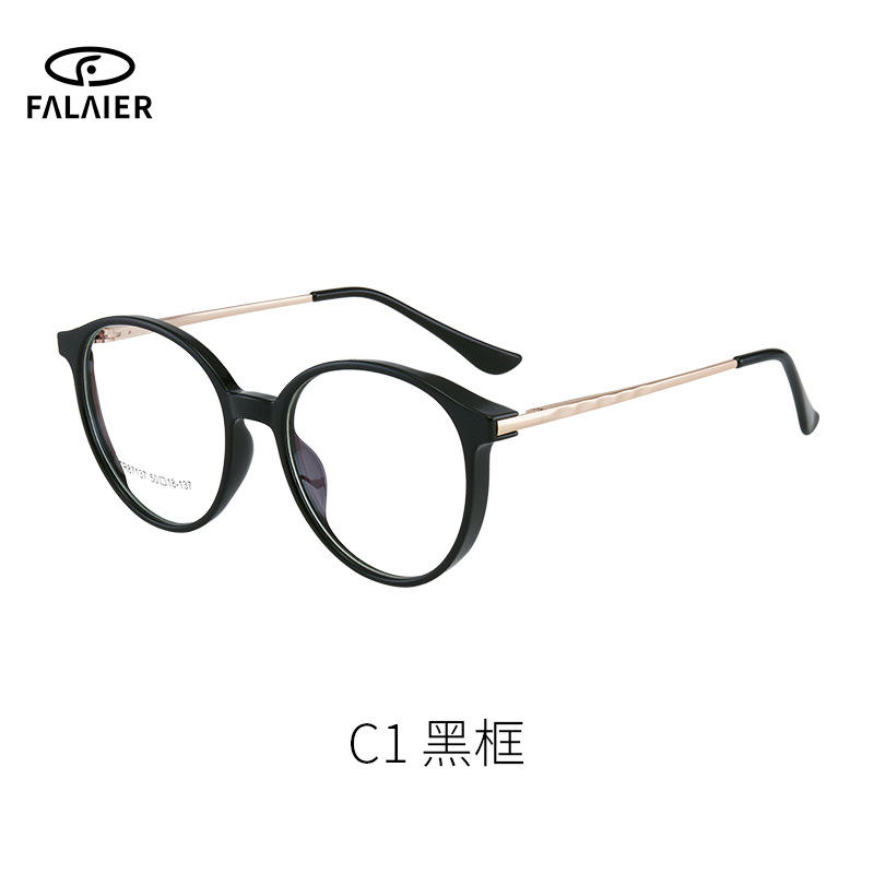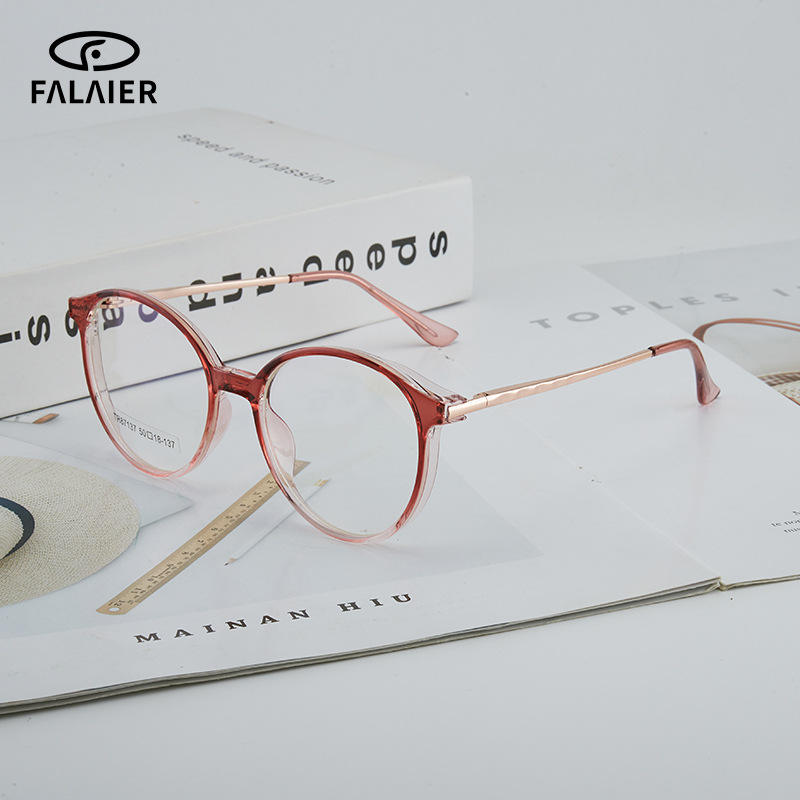 ฟาไลเออร์กรอบแว่นตาทรงกลม Tr90 50 มม. ป้องกันแสงสีฟ้าแว่นตาคอมพิวเตอร์สำหรับทุกเพศแว่นสายตาแบบเต็มกรอบ