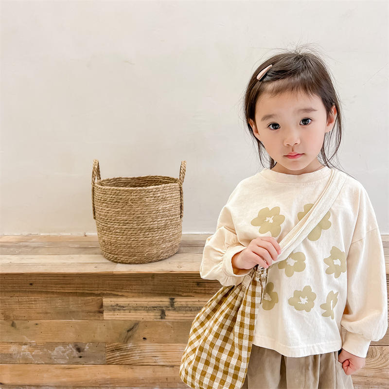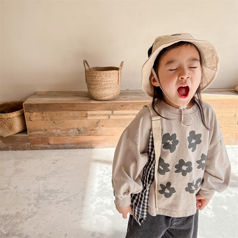 เสื้อเชิ้ตแขนยาวคอตตอนพิมพ์ลายสำหรับเด็กผู้หญิง B33A122078ฤดูใบไม้ร่วงและฤดูใบไม้ร่วง