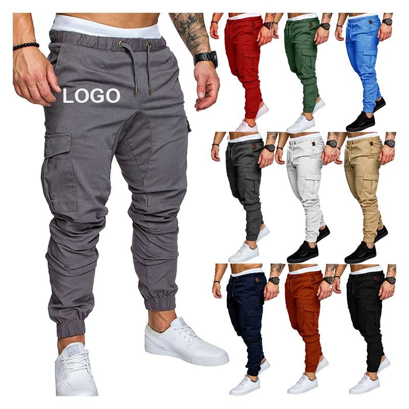 กางเกงขายาวสีพื้นผ้าฝ้ายสำหรับผู้ชาย ไซส์ใหญ่ สไตล์ลำลอง มีกระเป๋า เหมาะสำหรับใส่เล่นกีฬาหรือใส่ลำลอง