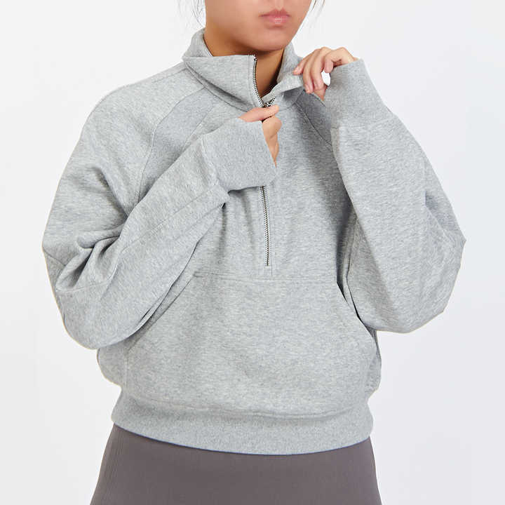 เสื้อฮู้ดแขนยาวแบบสวมศีรษะมีซิปครึ่งตัวของผู้หญิงเสื้อมีฮู้ดผ้าฟลีซผ้าคอตตอนกัน100% แฟชั่นฤดูใบไม้ร่วง