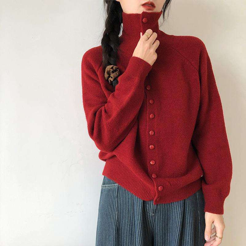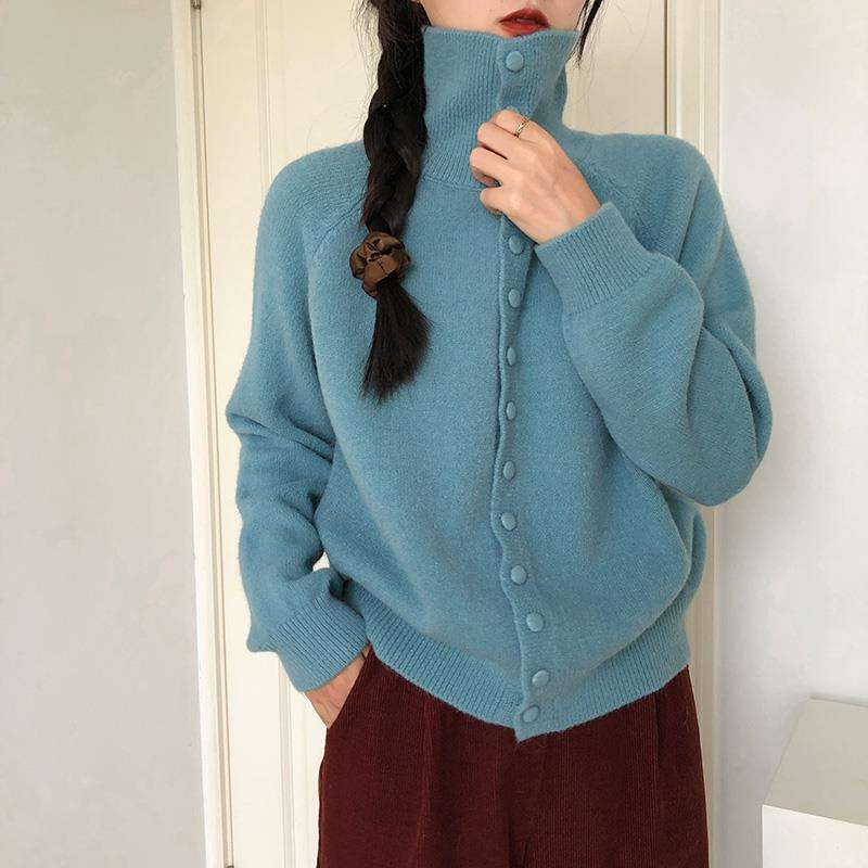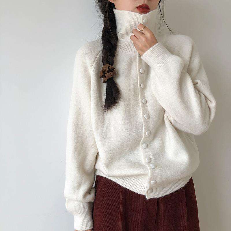 เสื้อคาร์ดิแกนถักคอสูงสำหรับผู้หญิง สไตล์วินเทจเกาหลี ทรงหลวม พรีเมียม แฟชั่นเสื้อสเวตเตอร์หลวมๆ
