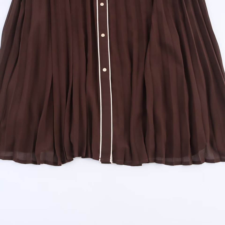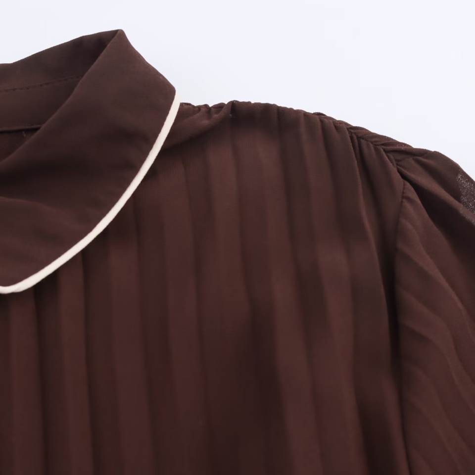 เดรสแฟชั่นแขนยาวคอปกจีบผูกเอวเรียบง่ายสำหรับผู้หญิงคอลเลคชั่นใหม่ประจำฤดูใบไม้ร่วง