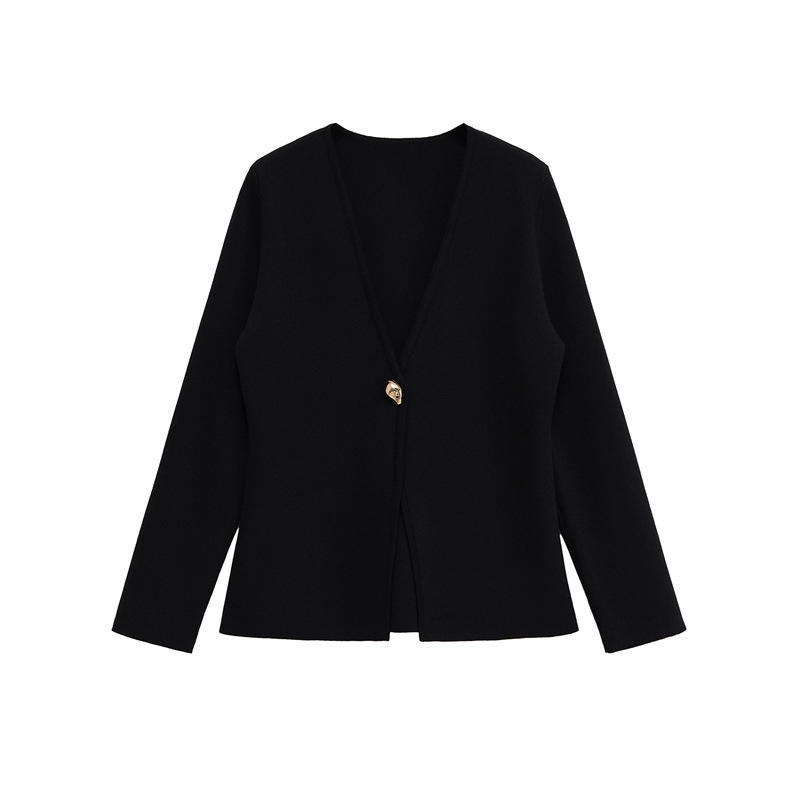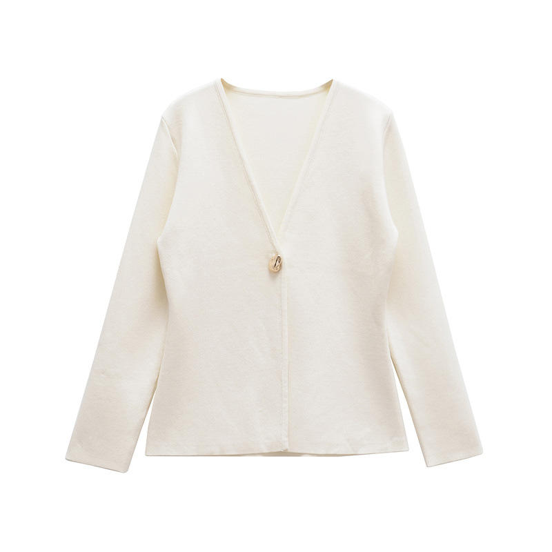 เสื้อคาร์ดิแกนไหมพรมแขนยาวทรงเข้ารูป คอวี ติดกระดุมเม็ดเดียว สีพื้น สไตล์มินิมอล สำหรับผู้หญิง คอลเลคชั่นใหม่ประจำฤดูใบไม้ร่วง