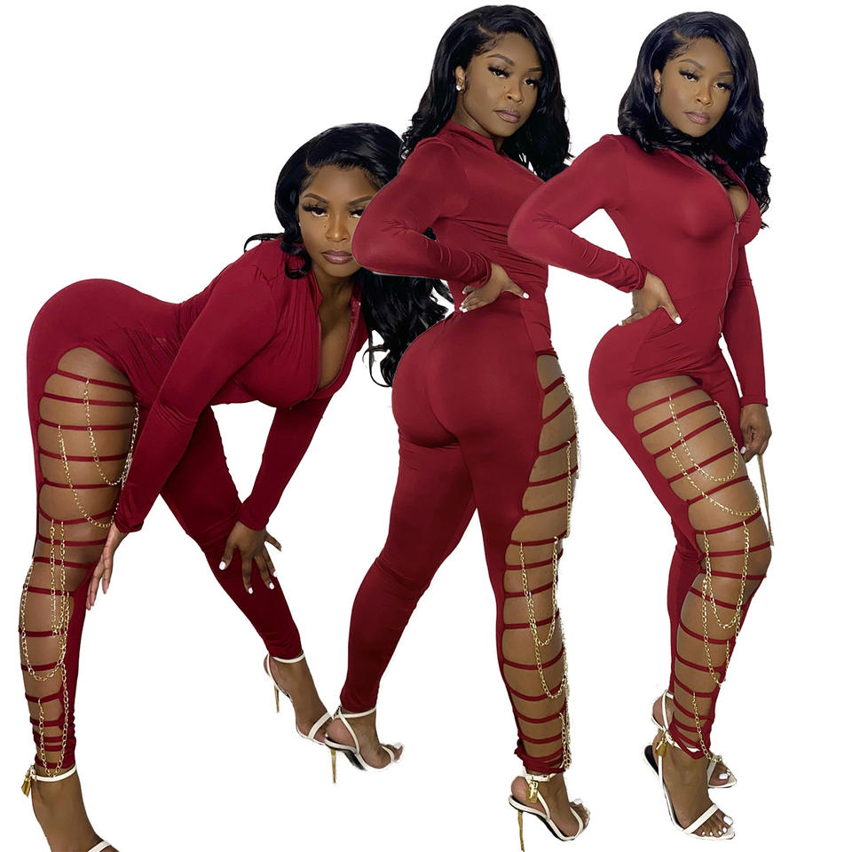 จั๊มสูทแขนยาวสำหรับไนต์คลับ,จั๊มสูททรงหลวมพิเศษแบบโซ่ไซส์ใหญ่พิเศษสำหรับฤดูใบไม้ร่วงปี2021