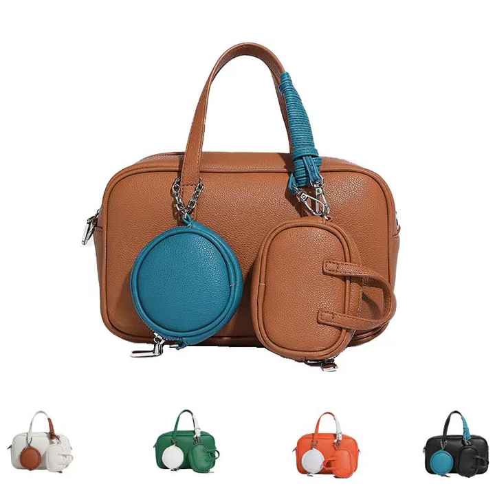 กระเป๋าถือผู้หญิงแฟชั่นแนวอินดี้สำหรับฤดูใบไม้ร่วง/ฤดูหนาว สไตล์วินเทจ สีสันสดใส ปิดด้วยซิป ทำจากวัสดุ PU พร้อมกระเป๋าใบเล็ก