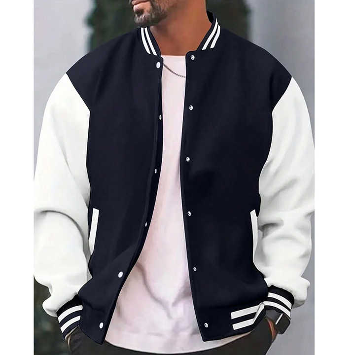 เสื้อแจ็คเก็ตเบสบอลผู้ชายสำหรับฤดูใบไม้ร่วงและฤดูหนาว ทรงหลวม คอตั้ง กระดุมแถวเดียว แฟชั่นลำลอง สไตล์วิทยาลัย