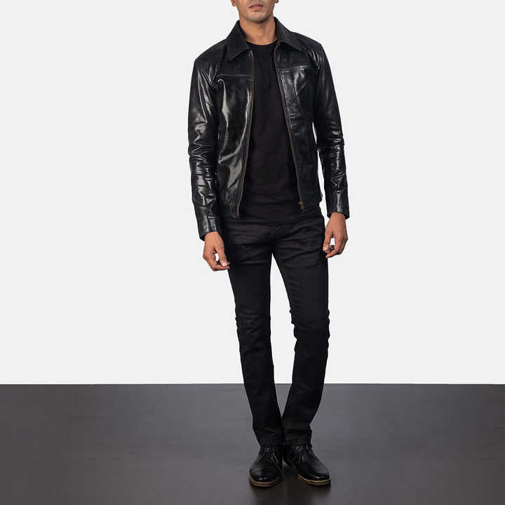 แจ็คเก็ตหนังผู้ชายสำหรับฤดูใบไม้ร่วงและฤดูหนาว คุณภาพดีที่สุด สไตล์ไบค์เกอร์ ซิปยาวเต็มตัว คอตั้ง เสื้อโค้ทสตรีทแวร์ แจ็คเก็ตหนังแท้สำหรับผู้ชาย
