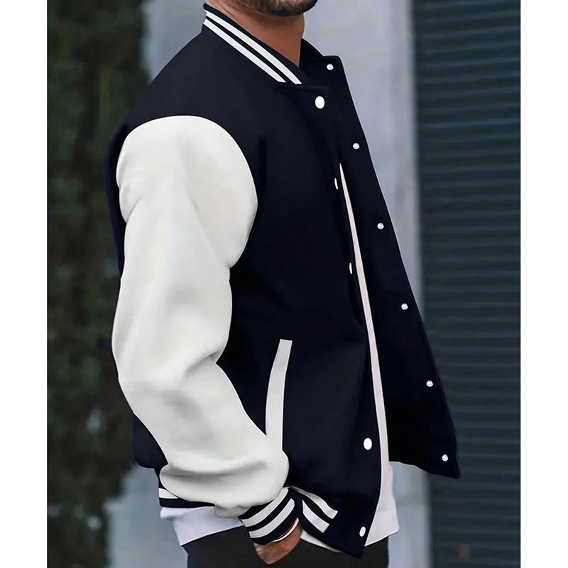เสื้อแจ็คเก็ตเบสบอลผู้ชายสำหรับฤดูใบไม้ร่วงและฤดูหนาว ทรงหลวม คอตั้ง กระดุมแถวเดียว แฟชั่นลำลอง สไตล์วิทยาลัย
