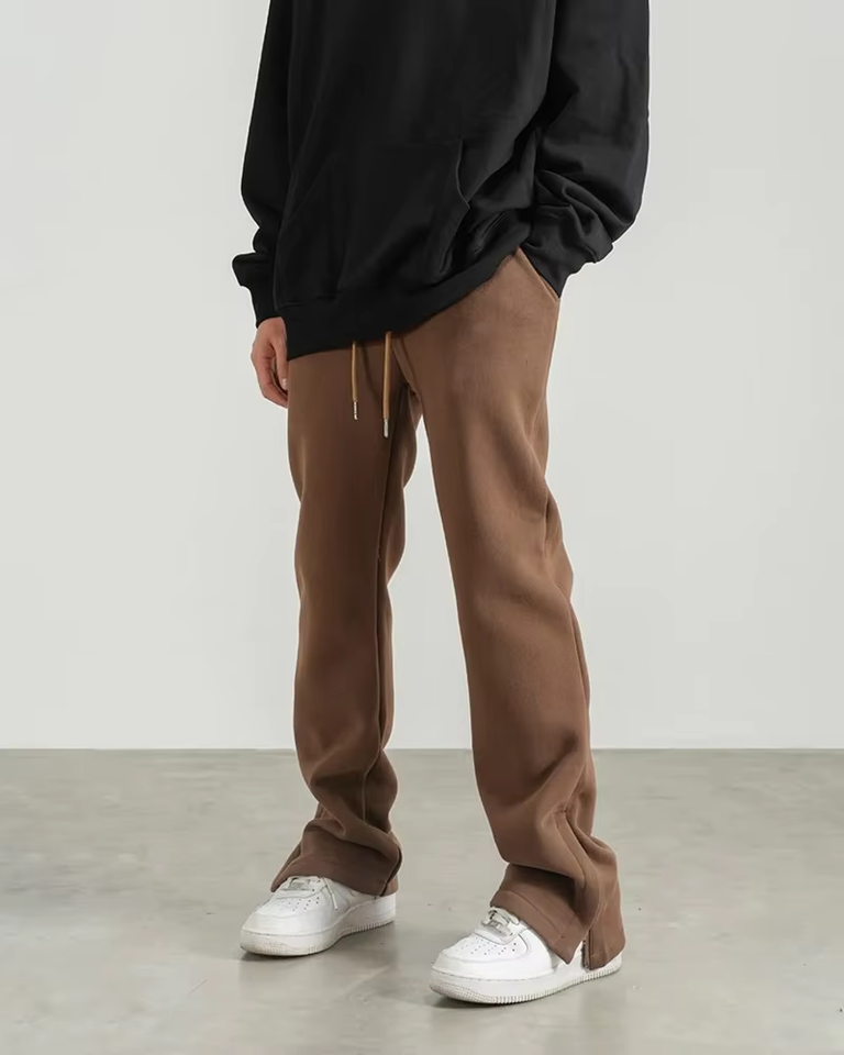 กางเกงวิ่งขาบานสำหรับผู้ชายกางเกงวอร์มผ้าเฟรนช์เทอร์รี่พร้อมโลโก้ใหม่สำหรับฤดูใบไม้ร่วงและฤดูหนาว