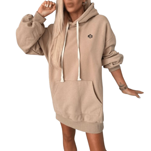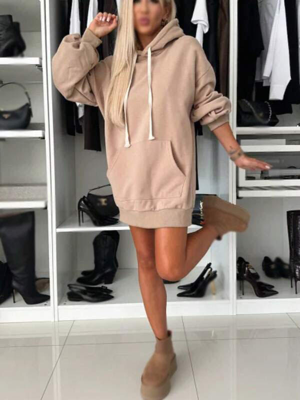 Fall Winter Women's Pullover Hoodies Dress Cotton Fleece Relaxed Fit Drop Shoulder Drawstring Hood Kangaroo Pocket Customizable
